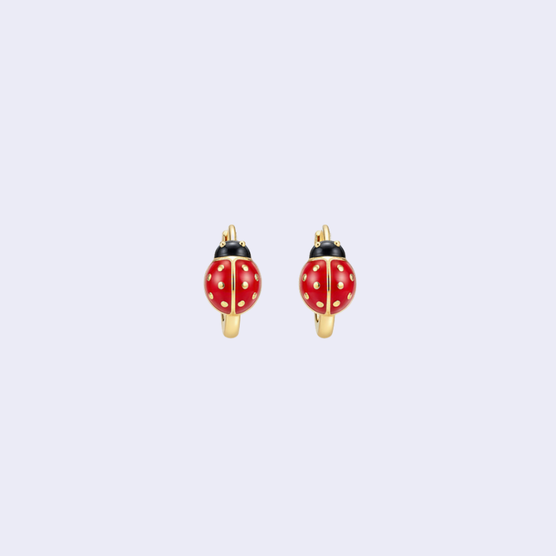 BOUCLES CREOLES ENFANT DOREES COCCINELLE ROUGE