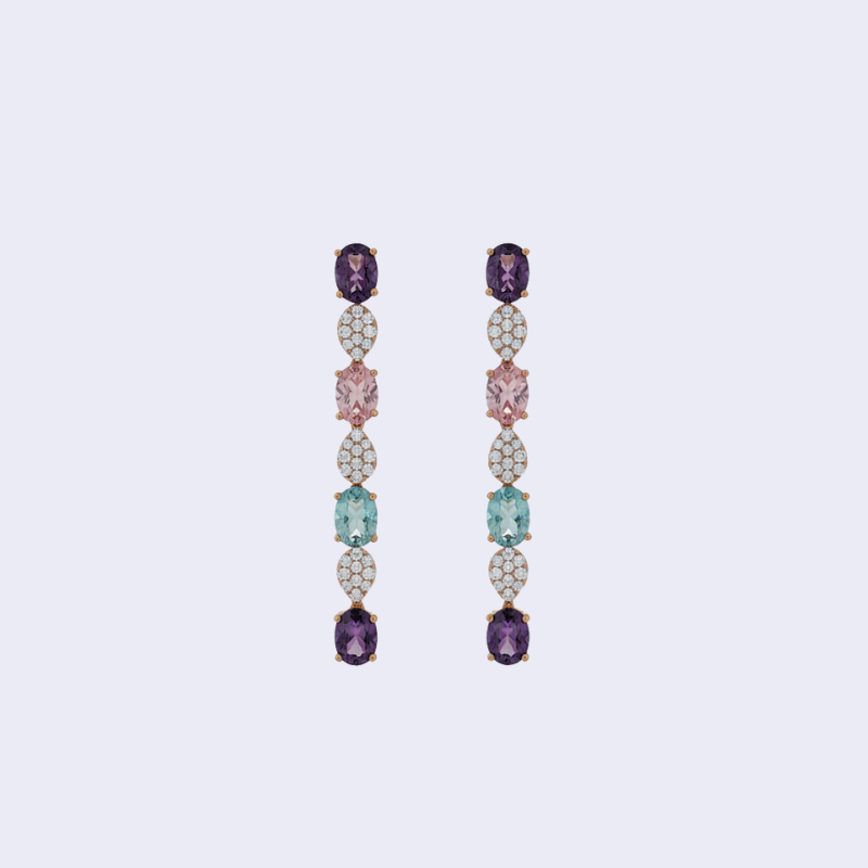 BOUCLES PENDANTES FEMME DOREES ZIRCONS MULTICOLORES