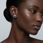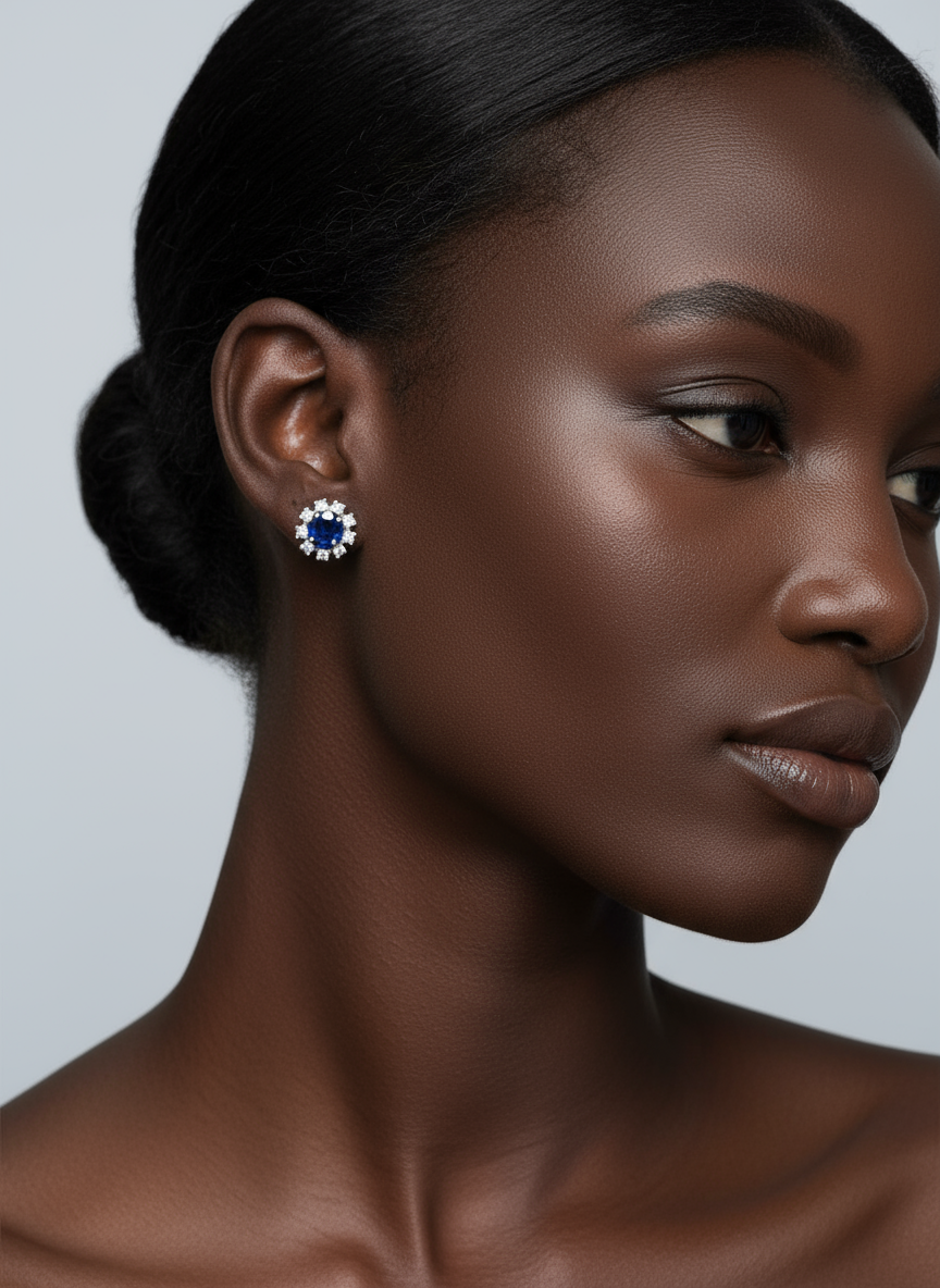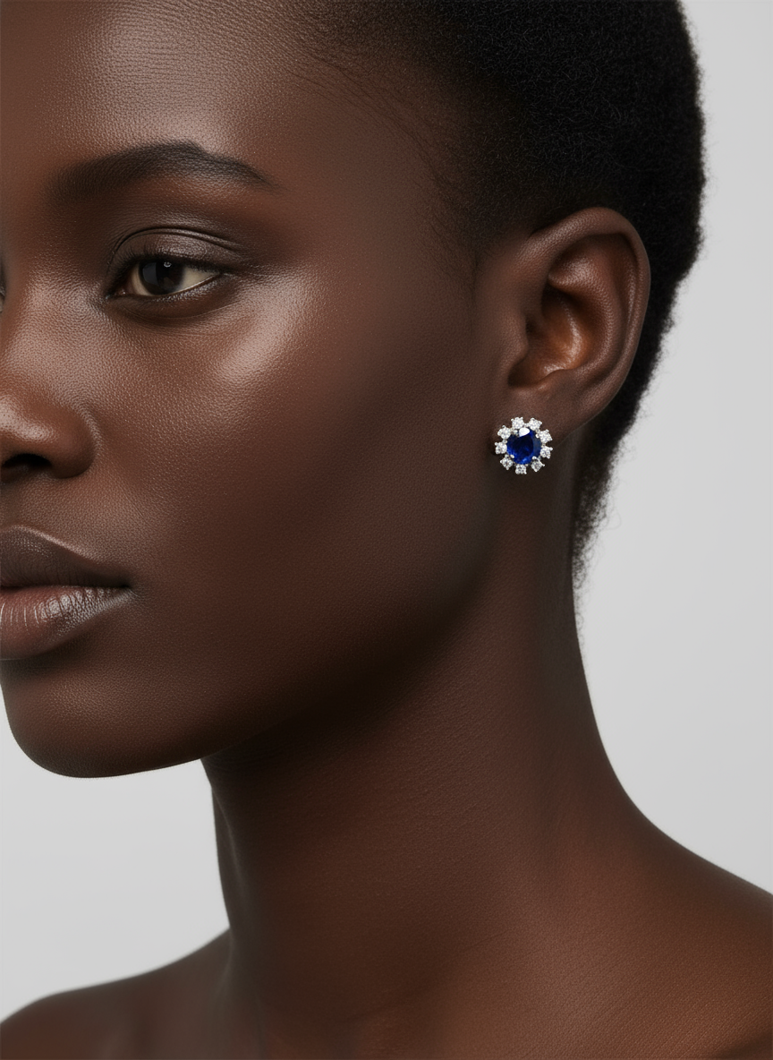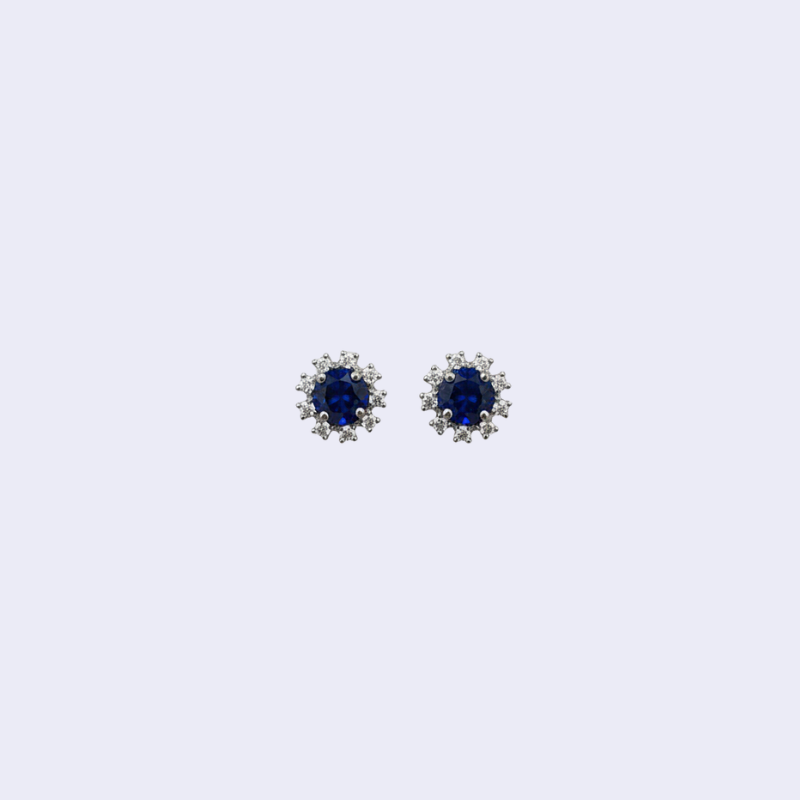 BOUCLES A VICES ZIRCON BLEU PLAQUE OR GRIS