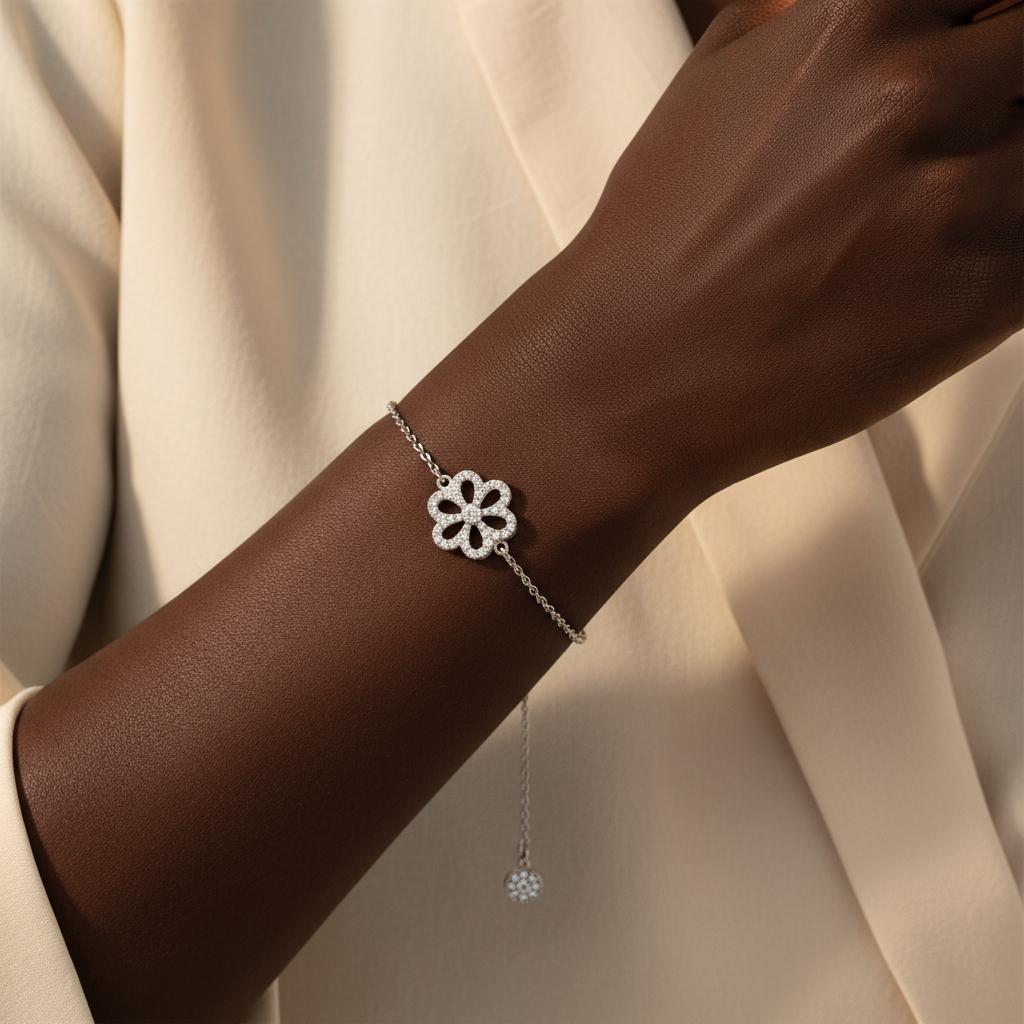BRACELET GOURMETTE FEMME PLAQUE OR GRIS ECLAT ZIRCONS