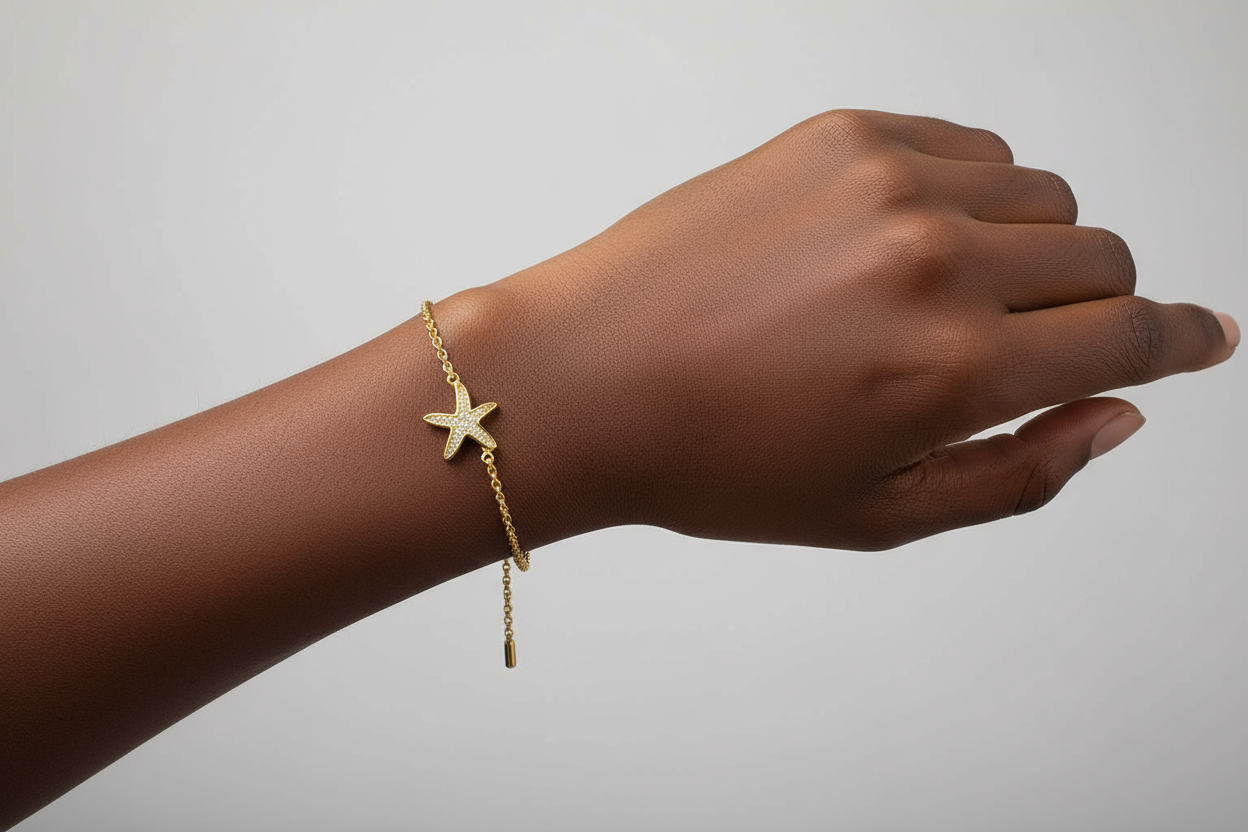 BRACELET GOURMETTE FEMME PLAQUE OR ETOILE ZIRCONS