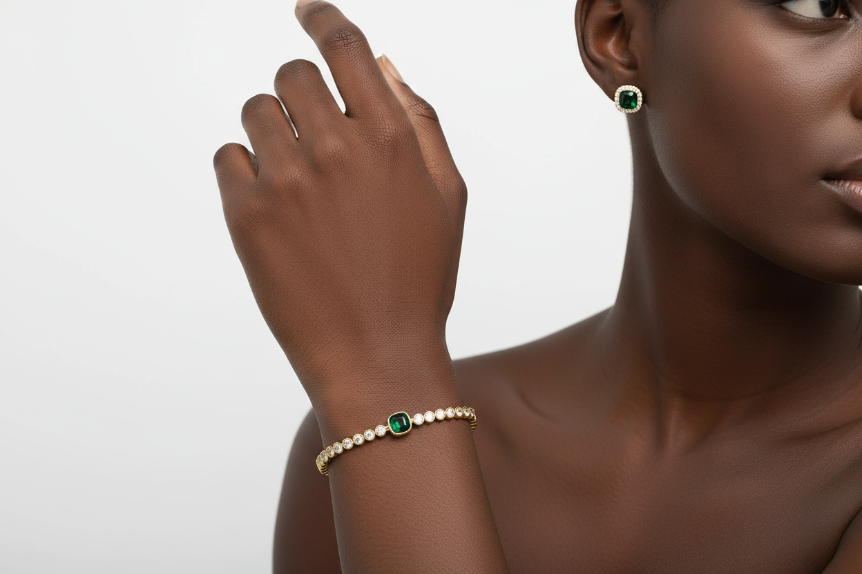 BRACELET GOURMETTE FEMME PLAQUE OR KITA ZIRCONS VERT