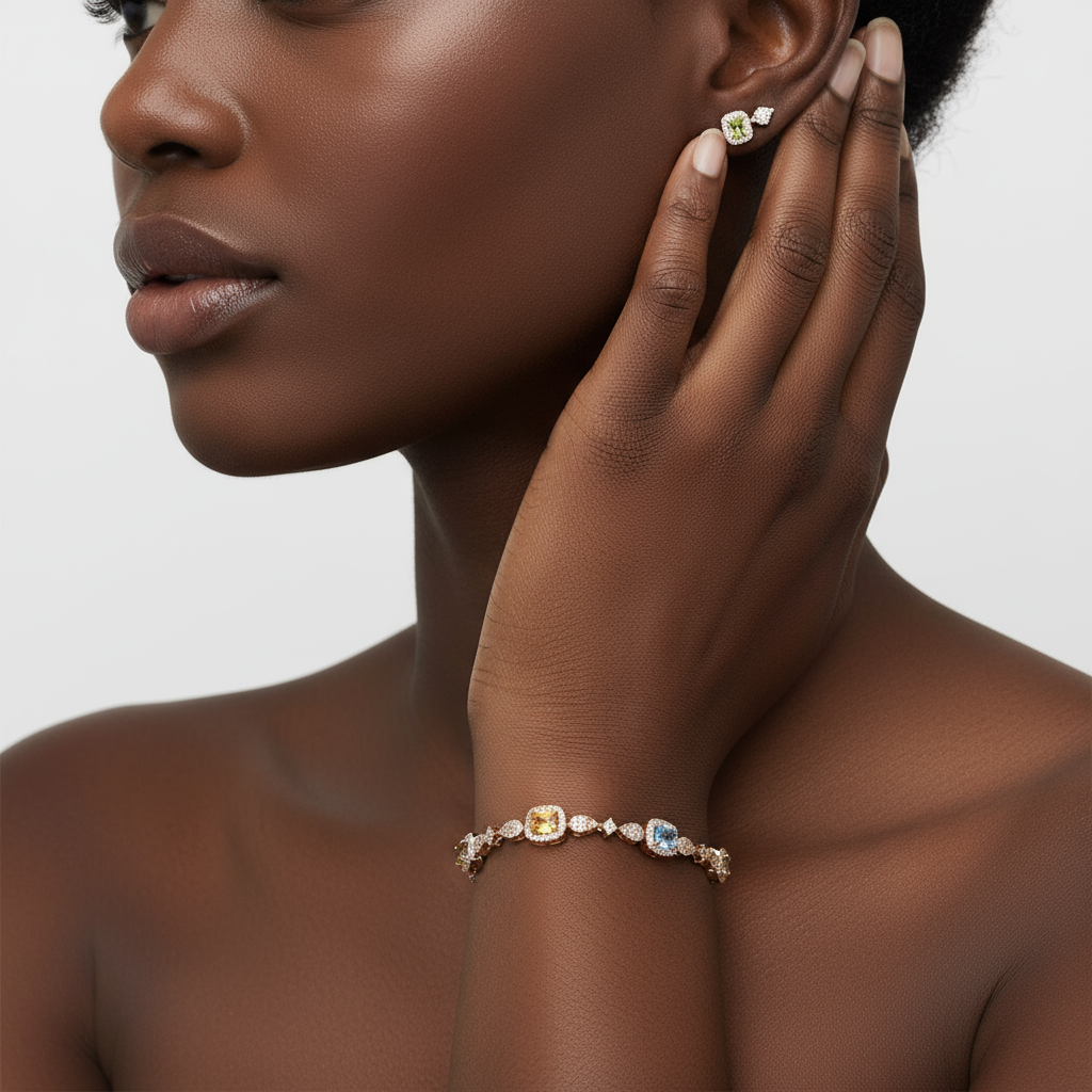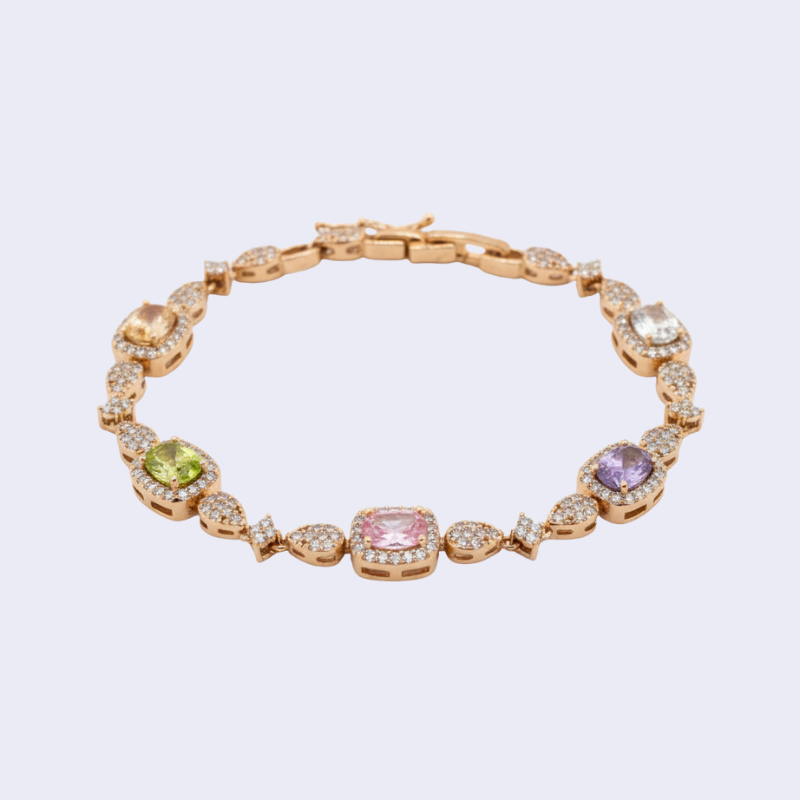 BRACELET GOURMETTE FEMME PLAQUE OR CHRIS ZIRCONS MULTICOLORE