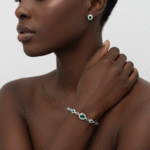 BRACELET GOURMETTE FEMME PLAQUE OR GRIS RENA SWAROVSKI VERT