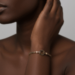 BRACELET GOURMETTE FEMME PLAQUE OR ROND ZIRCONS