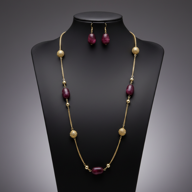 SAUTOIR DAME PLAQUE OR GROSSE PIERRE FONCEE