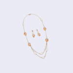 SAUTOIR DAME PLAQUE OR GROSSE PIERRE DOUBLE TOUR ORANGE