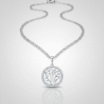COLLIER FEMME ARBRE ZIRCON PLAQUE OR GRIS PETIT MOYEN CERCLE