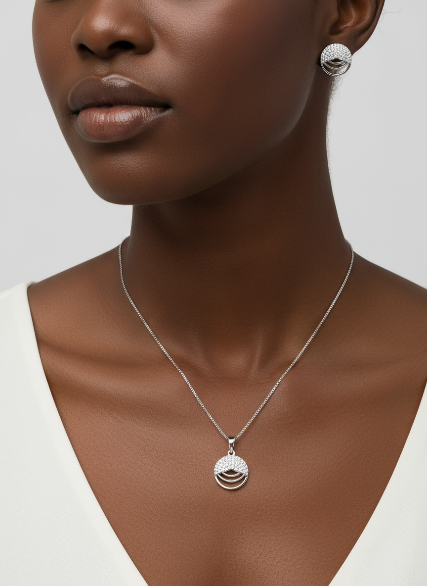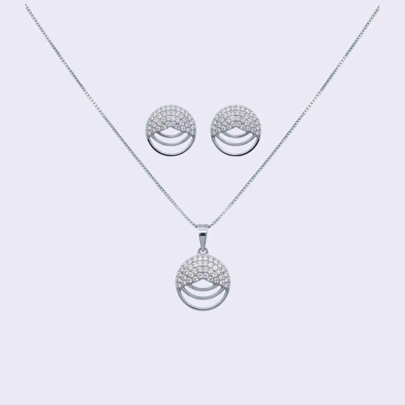 ENSEMBLE FEMME CERCLE ET ZIRCONS PLAQUE OR GRIS
