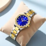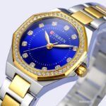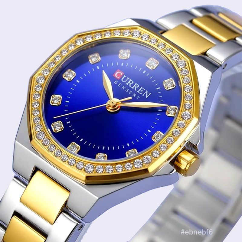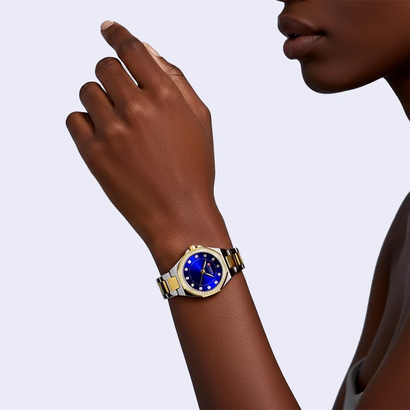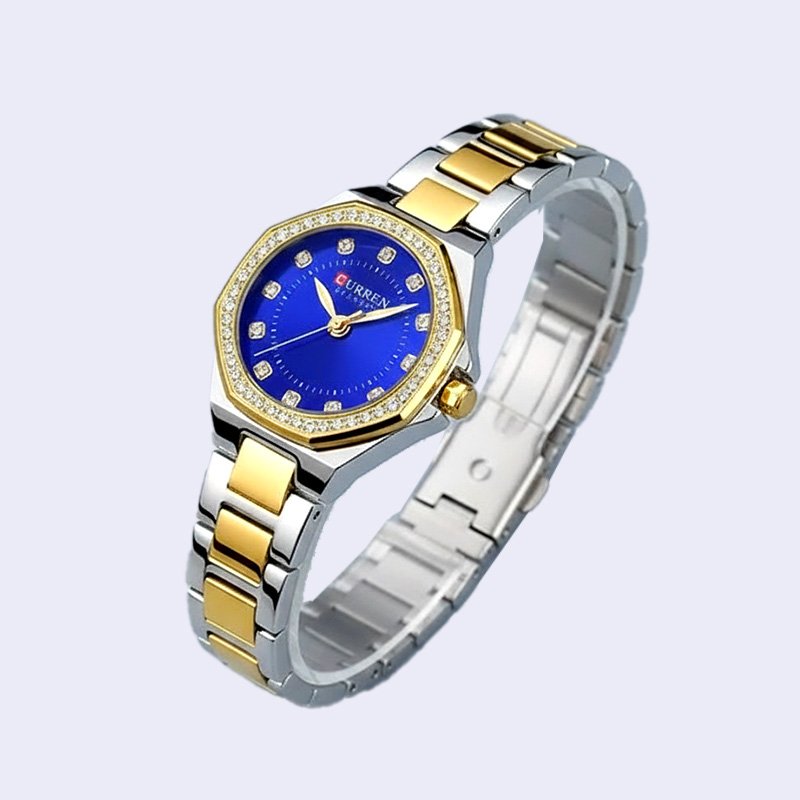 MONTRE FEMME CURREN LOSANGE RITA DEUX TONS OR FOND BLEU ACIER INOX