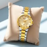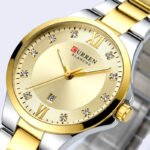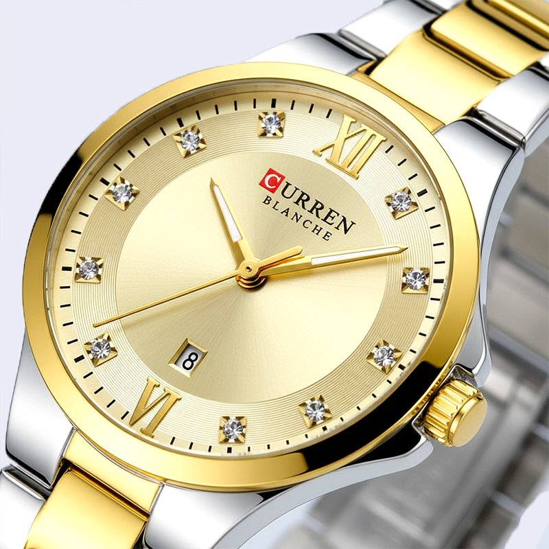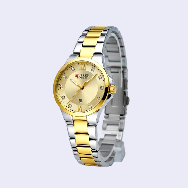 MONTRE FEMME CURREN RONDE FRIDA DEUX TONS FOND DORE ACIER INOX DORE