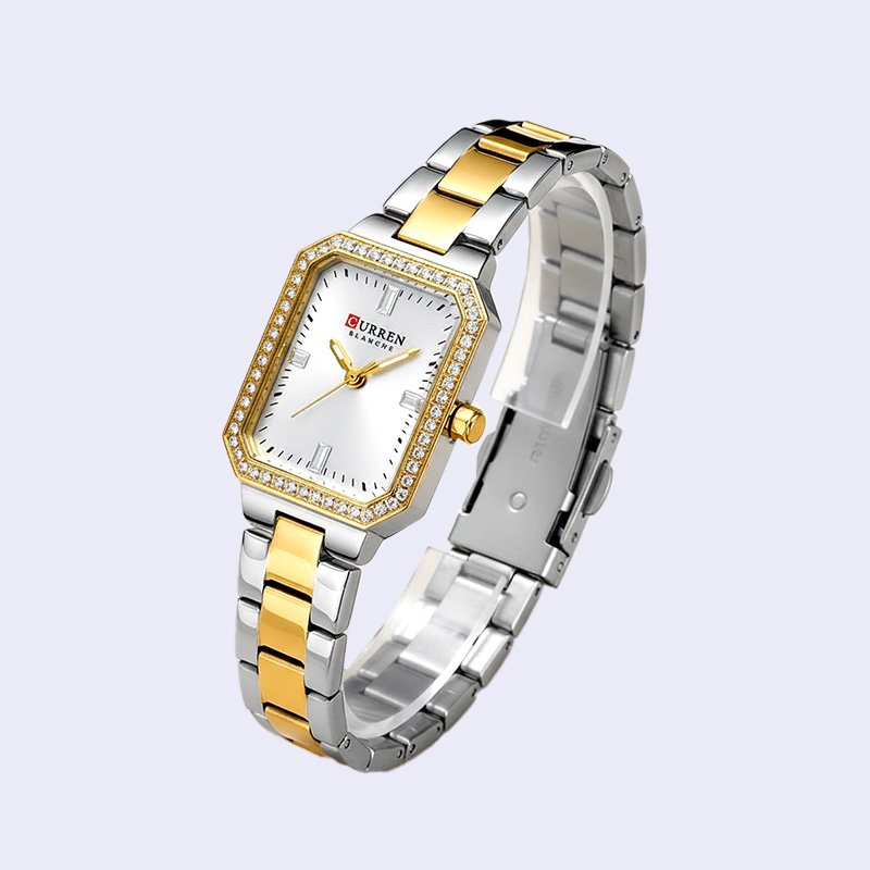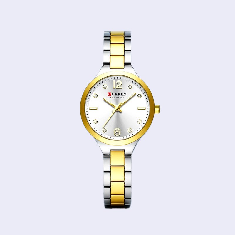 MONTRE FEMME CURREN RONDE FRIDA DEUX TONS FOND GRIS ACIER INOX DORE
