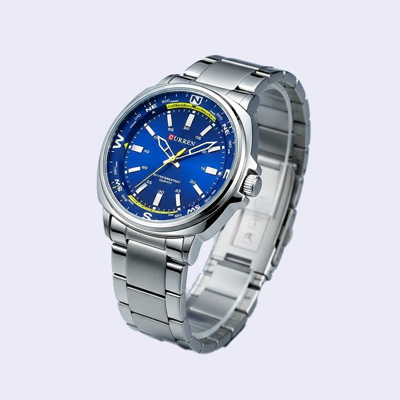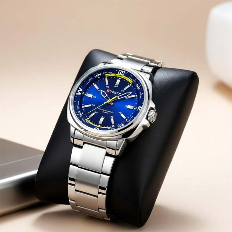 MONTRE HOMME CURREN RONDE ERIC FOND BLEU ACIER INOX