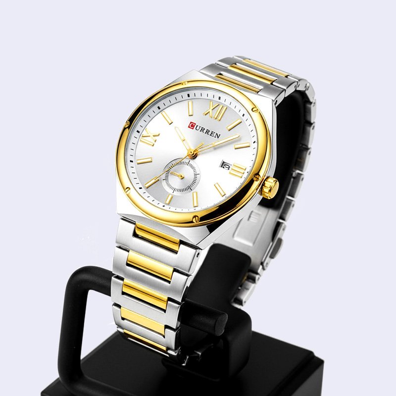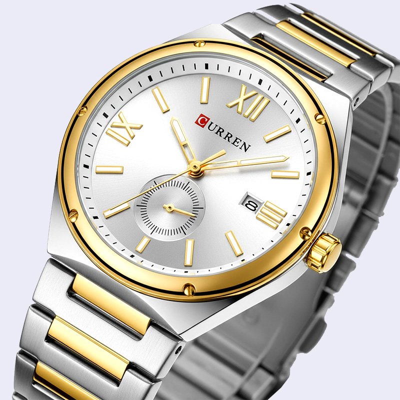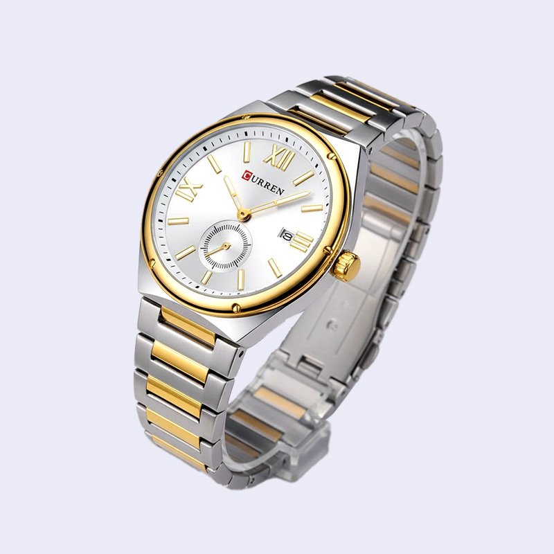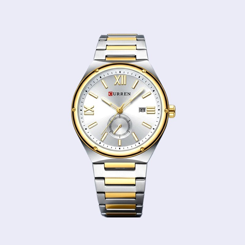 MONTRE HOMME CURREN RONDE VILA FOND GRIS DEUX TONS ACIER INOX