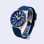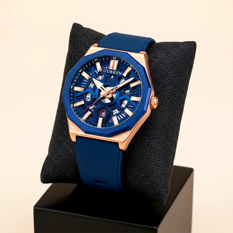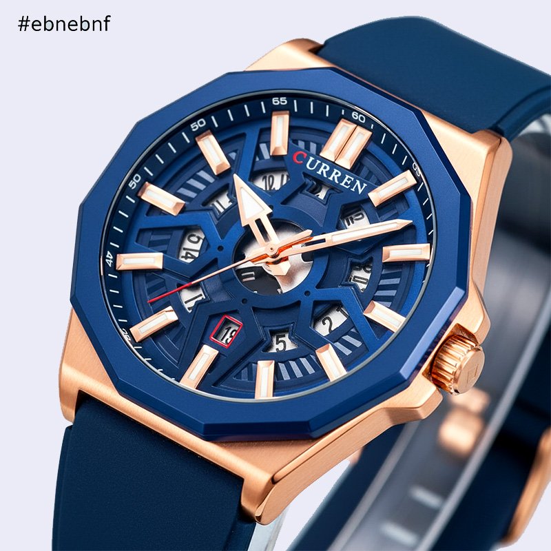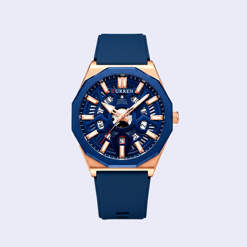 MONTRE HOMME CURREN RONDE STEPHANE SILICONE NOIR ACIER INOX ROSE