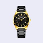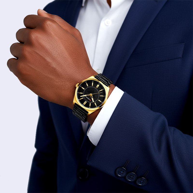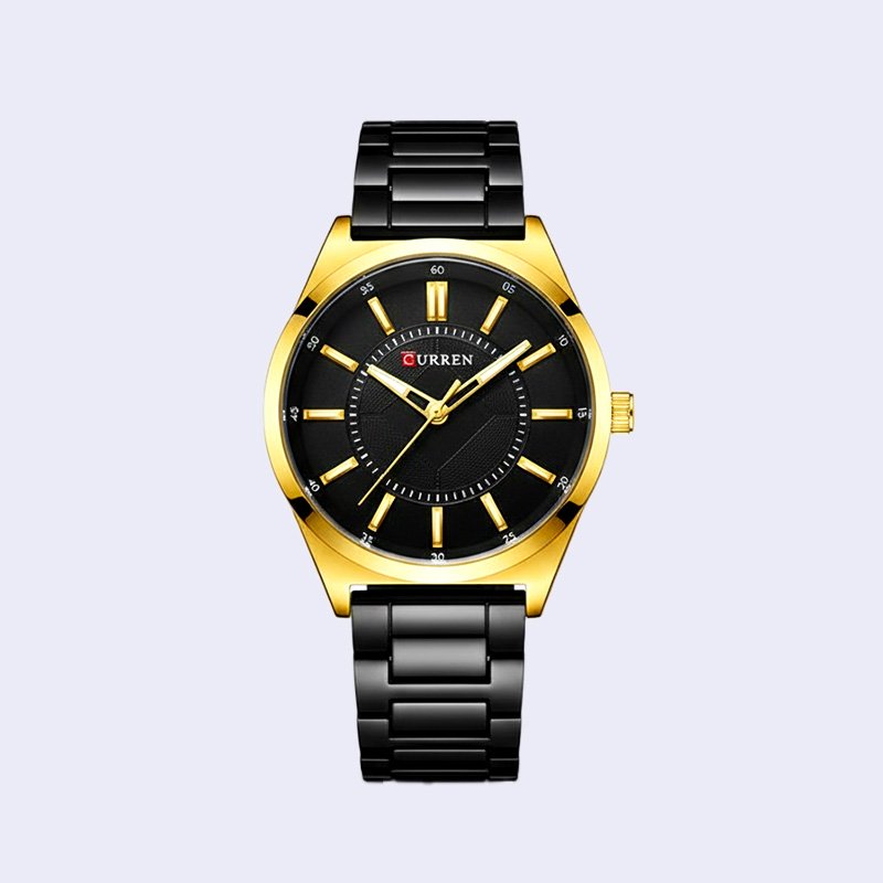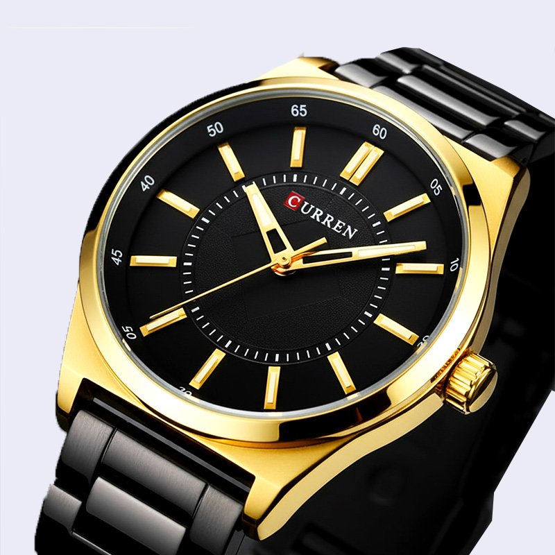 MONTRE HOMME CURREN RONDE LUC FOND NOIR ACIER INOX DORE ET NOIR