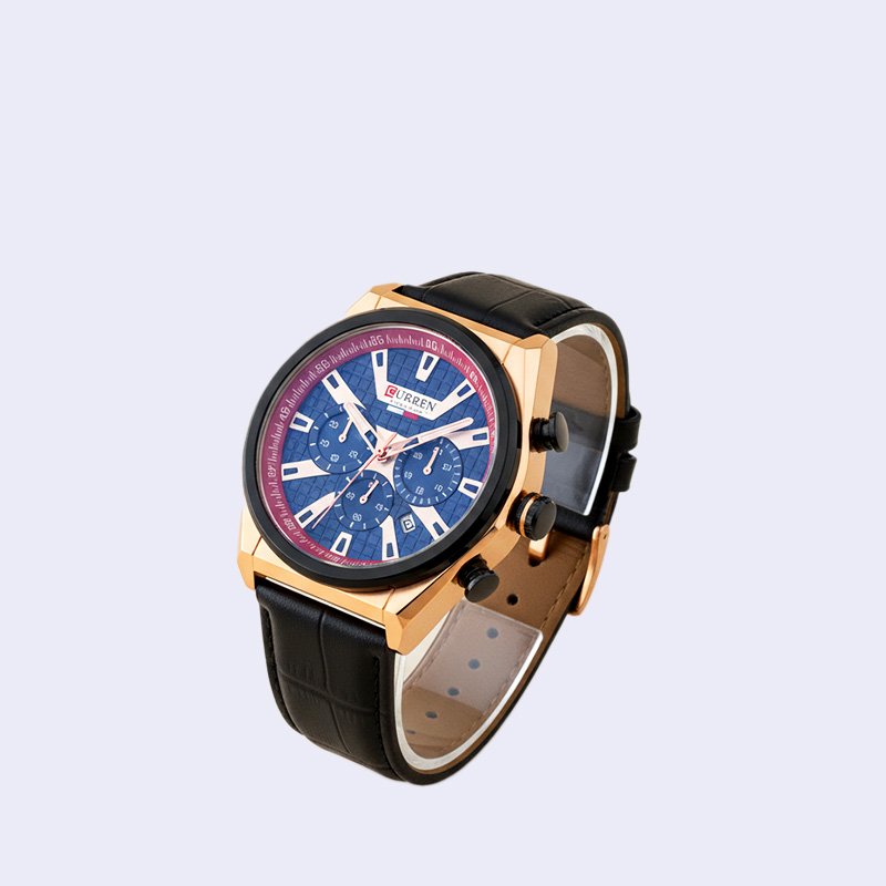 MONTRE HOMME CURREN RONDE RAFAEL CHRONO ROSE ET BRACELET CUIR INOX
