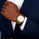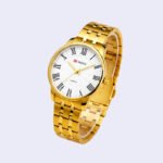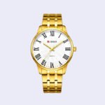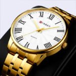 MONTRE HOMME CURREN RONDE ERIC FOND BLANC CHIFFRE ROMAIN ACIER INOX DORE