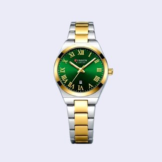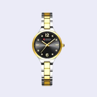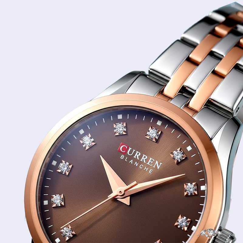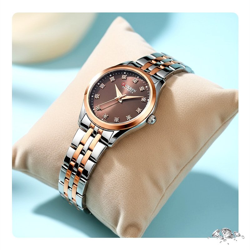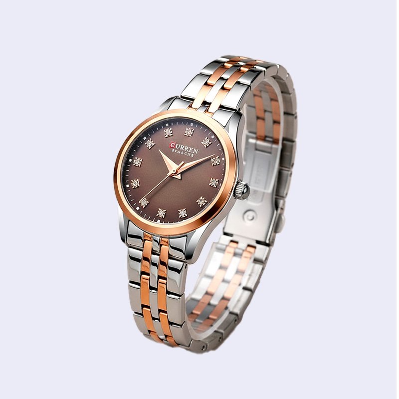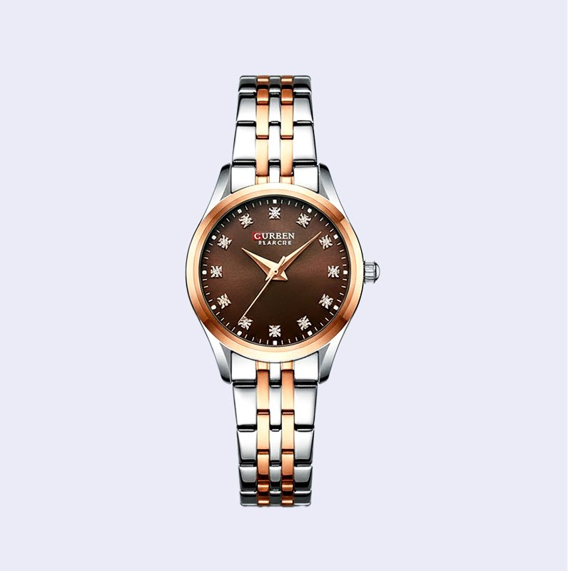 MONTRE FEMME CURREN RONDE DANIE DEUX TONS DORE FOND MARRON ACIER INOX