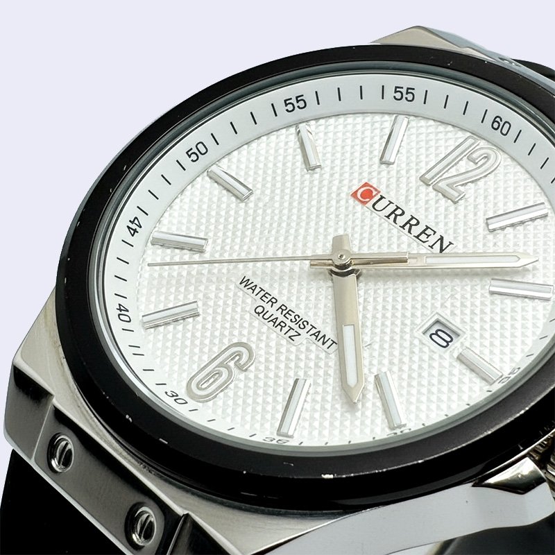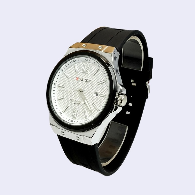 MONTRE HOMME CURREN RONDE SPORT SILICONE FRED NOIRE ET BLANCHE ACIER NOIR