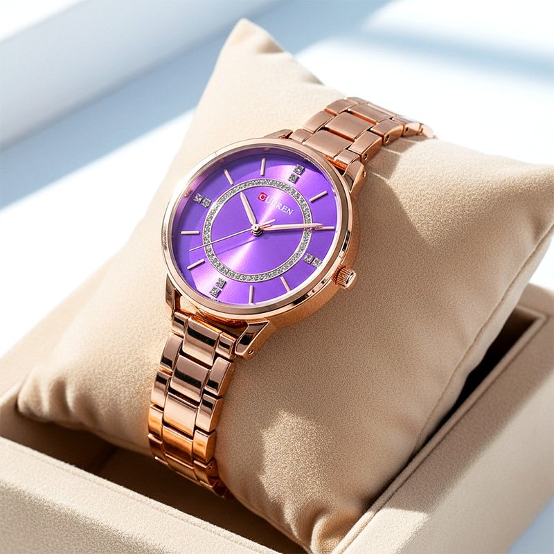 MONTRE FEMME CURREN RONDE FANTA FOND VIOLET ACIER INOX ROSE