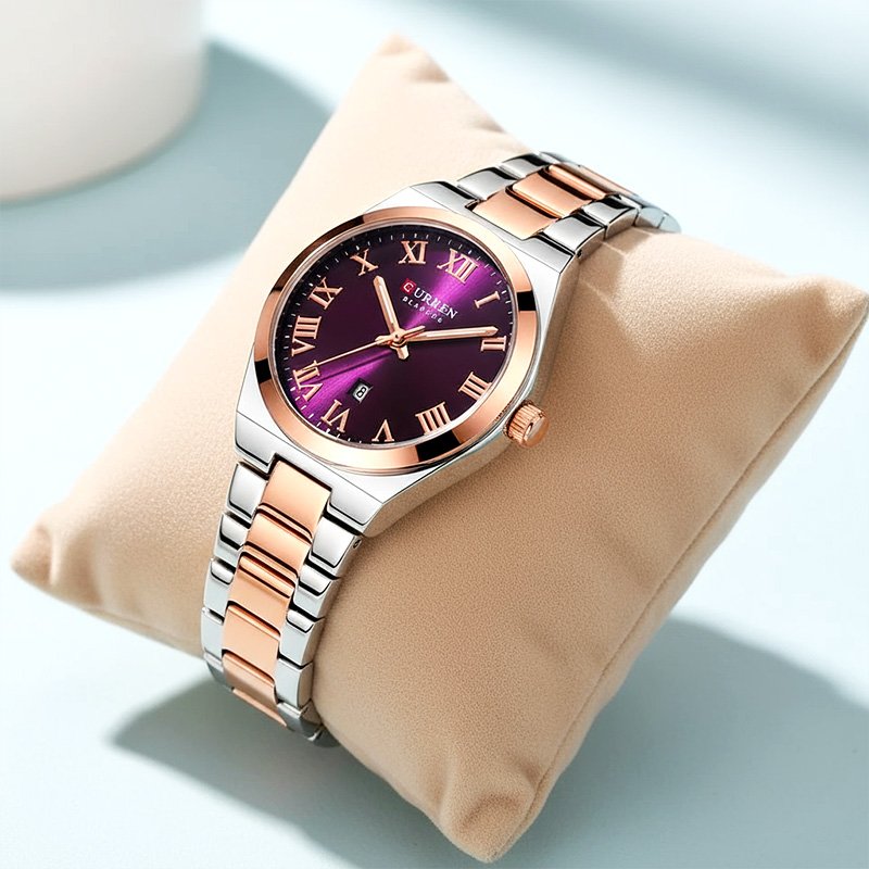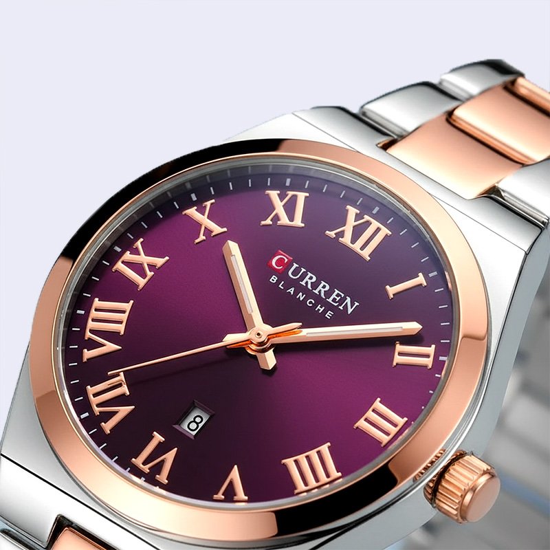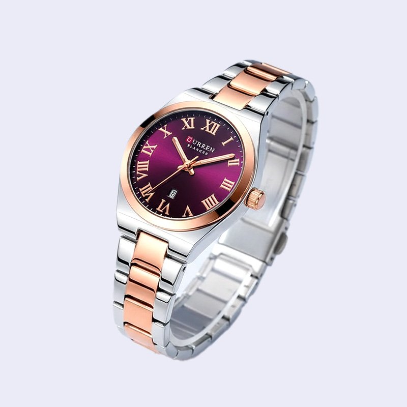MONTRE FEMME CURREN RONDE FLORENCE DEUX TONS FOND BORDEAUX ACIER INOX ROSE